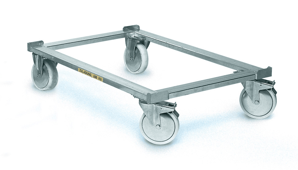 Kraftige undervogner tilpasset Zarges aluminiumskasser K-470, Eurobox og K- 270. Leveres med 4 stk. 125 mm gummihjul - 2 stk. med sving og 2 stk. faste.